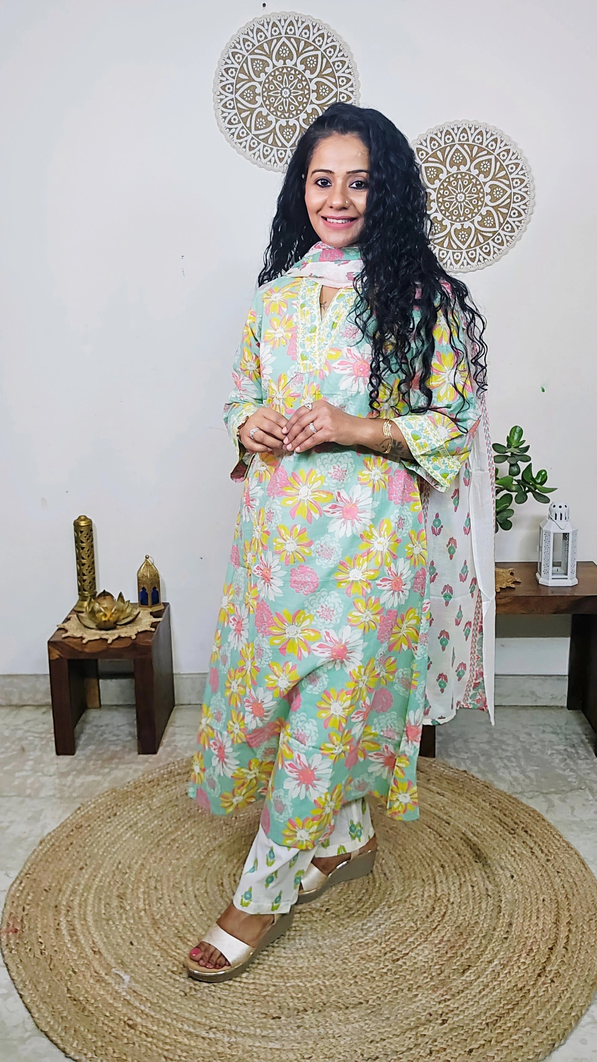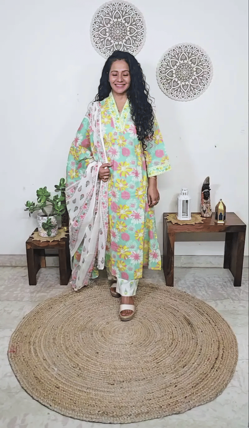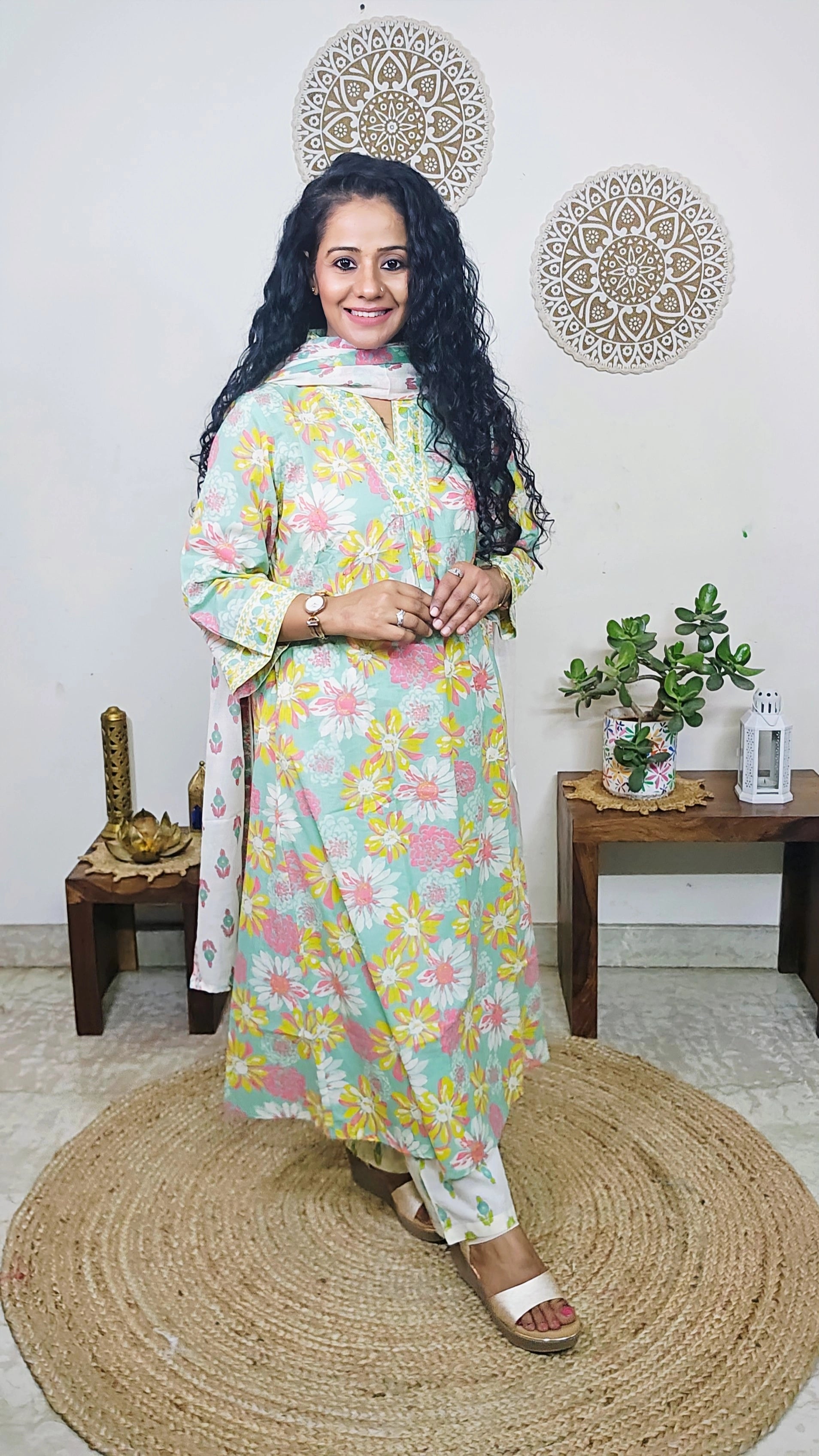 SEO Keywords: A-line kurta set, cotton readymade kurta, casual wear kurta, office wear ethnic set, festive kurta for women, cotton kurta with pants, ethnic wear for women, trendy Indian outfits, stylish kurta set.