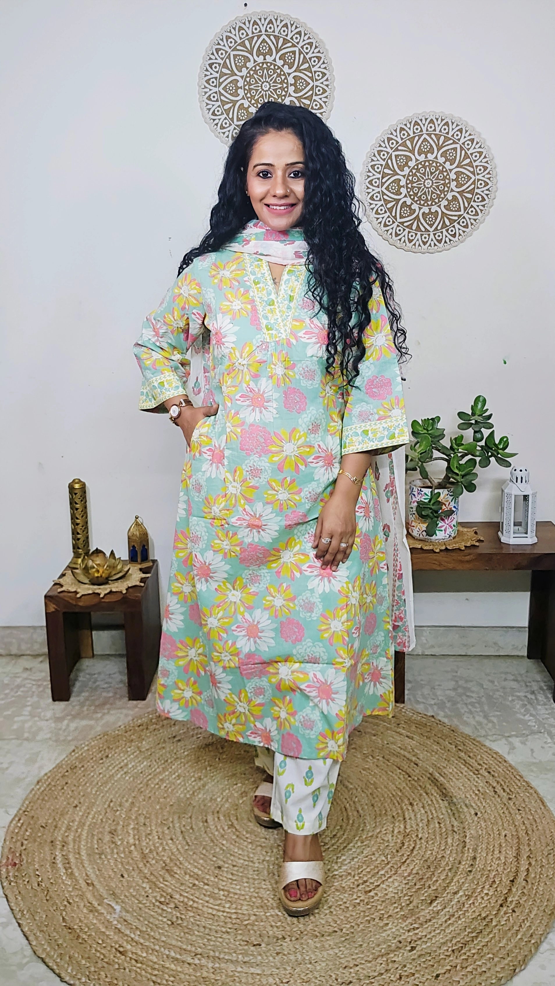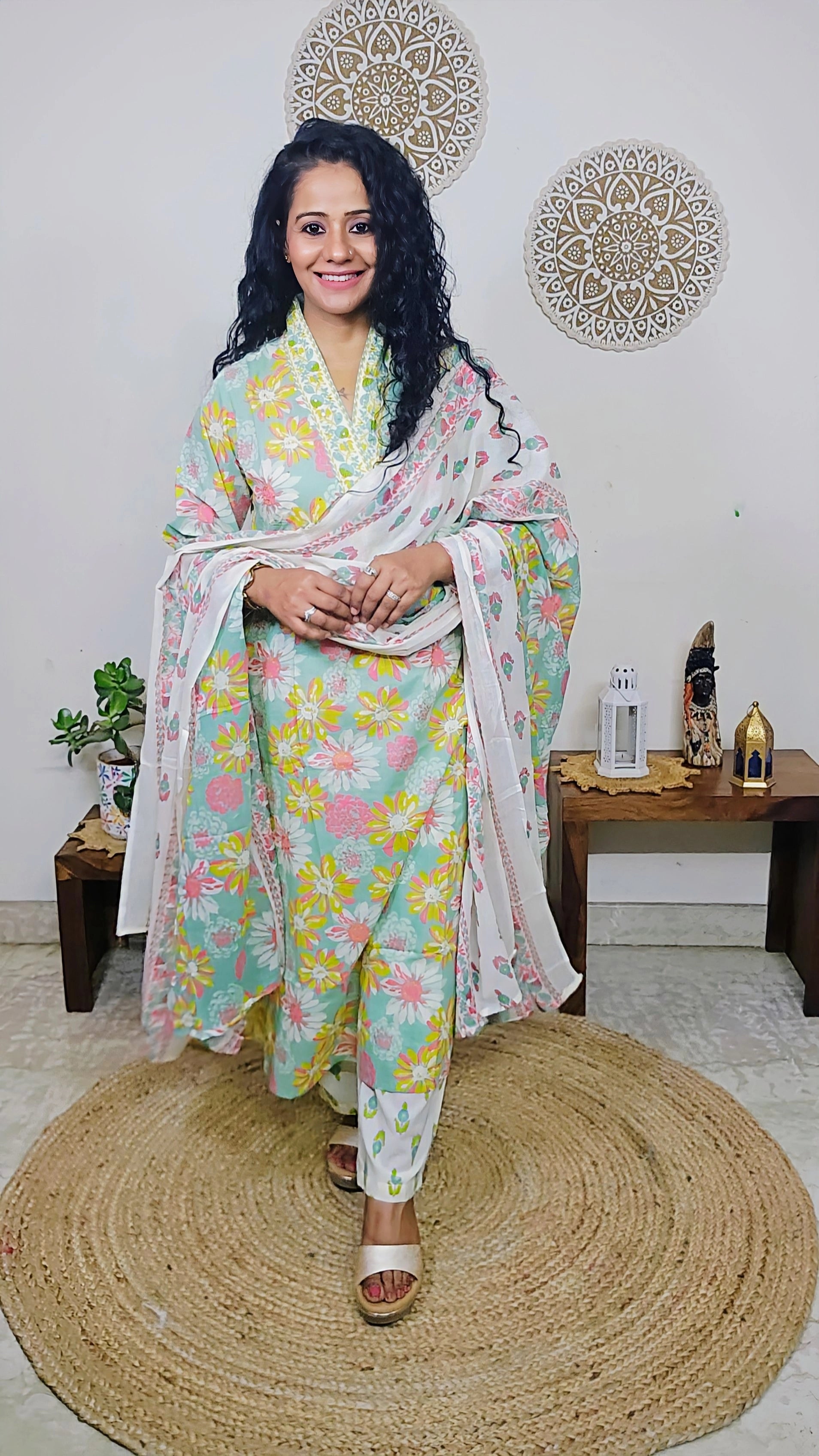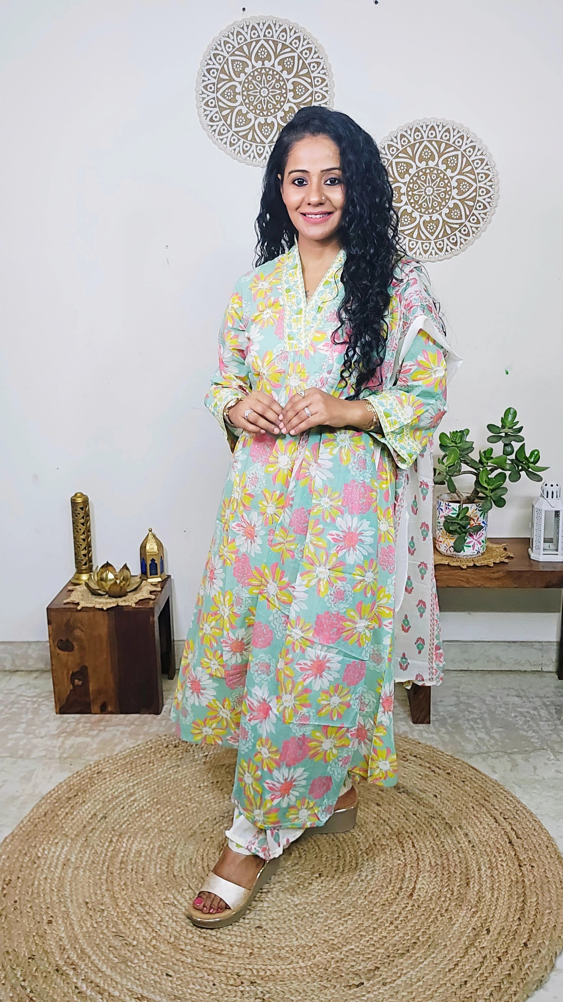 SEO Keywords: A-line kurta set, cotton readymade kurta, casual wear kurta, office wear ethnic set, festive kurta for women, cotton kurta with pants, ethnic wear for women, trendy Indian outfits, stylish kurta set.